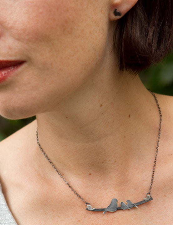 Sterling Mother Bird & Baby Bird Charm Necklace Set