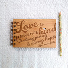 An adorable + charming little wooden guest or vow book! Inspired by the traditional wedding reading of 1 Corinthians 13:4. Each heirloom quality guestbook is hand crafted and made with sustainably harvest woods & papers. These 6"X4" guestbooks will fit seamlessly into weddings of all sizes and themes, particularly your: rustic, woodland, traditional, bohemian, small, church, backyard, or destination wedding!