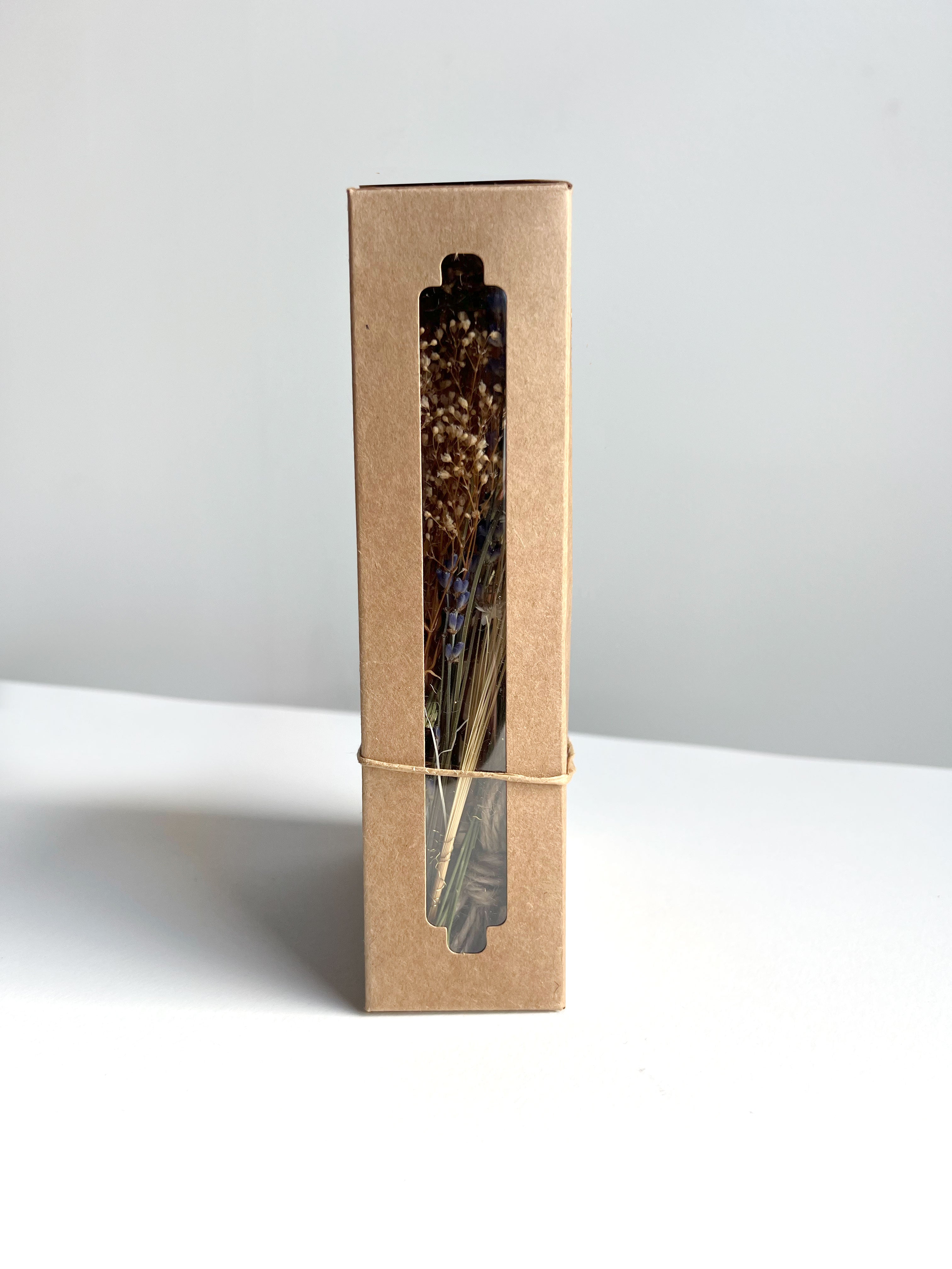 • Selection of Dried Florals: Carefully curated, handpicked blooms and greenery for a natural, everlasting design.