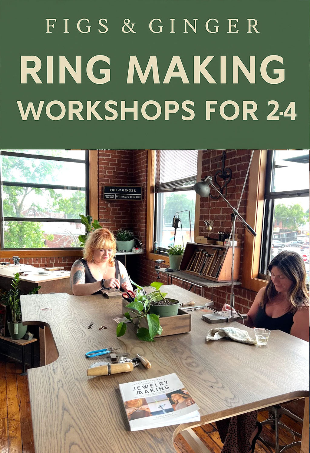 Come spend 3 hours in our light-filled studio and make your own Sterling Silver rings. There are up to 4 attendees per session, but if you want to make it a double date, save when you all book at once! Or if you're looking for an all inclusive Ring Making Experience with charcuterie, custom gifts, practice projects and a full day in the studio, please check out this listing HERE.
